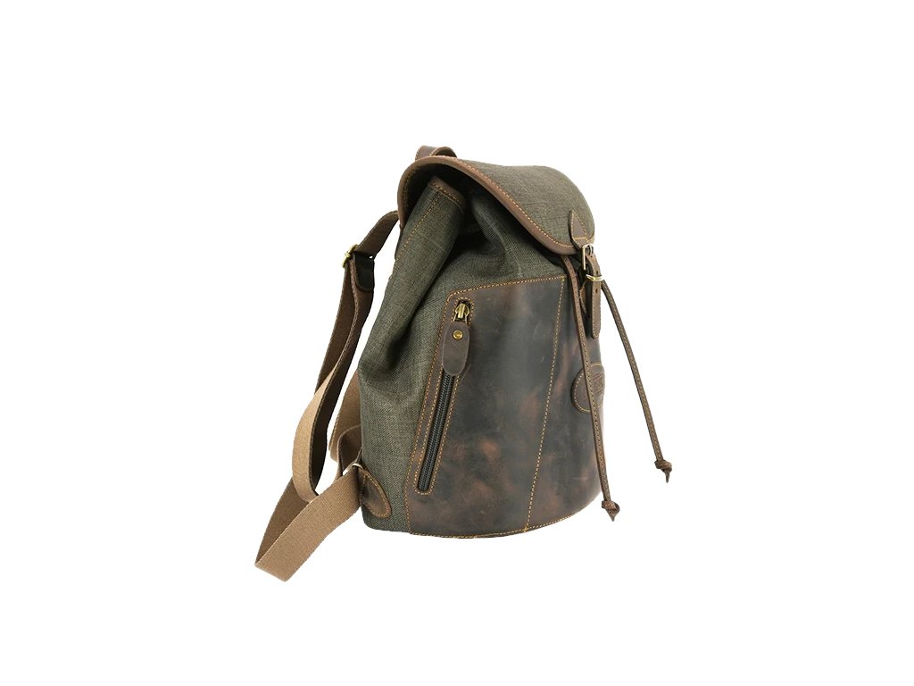 Batoh z Exploreru s vodovzdornou úpravou, kůže s efektem teletiny. Ručně dokončený, do detailů vypracovaný, pevně ušitý. Je podšitý pratelným a prodyšným materiálem. Dvě venkovní kapsy a vnitřní kapsa na zip.
