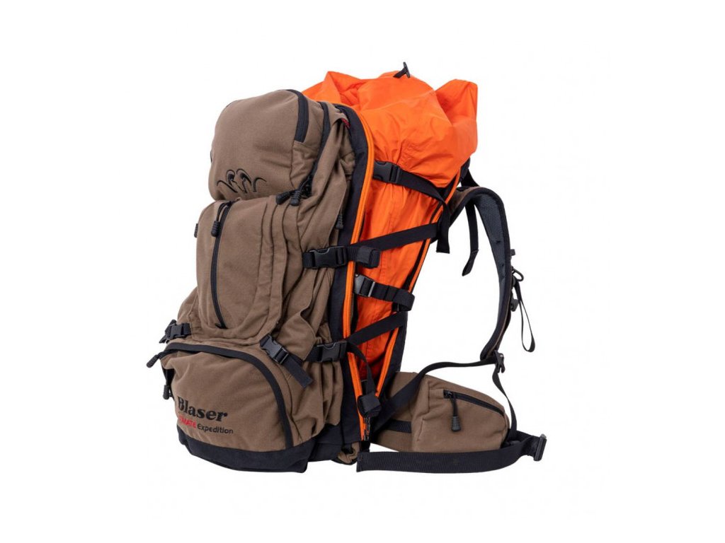 Batoh Blaser Ultimate Expedition má ty nejlepší vlastnosti, které má správný batoh mít. Ergonomicky i výškově nastavitelný nosný systém s oddílem pro bezpečnou přepravu zbraně. Ergonomická zádová část vyztužená hliníkem pro pohodlné a bezpečné nošení i při velké zátěži. Náklad můžete vkládat z vrchu i zpředu. Součástí je vak na přenášení ulovené zvěře. Nechybí ani část pro transport tekutin a pláštěnka. Určitě oceníte i téměř nehlučné uzavírání zipu. Batoh je vyroben z odolných materiálů. Obsah batohu je přibližně 43 l, vnější rozměry (délka x šířka x výška) jsou 31 x 25 x 65 cm, hmotnost 3,3 kg.