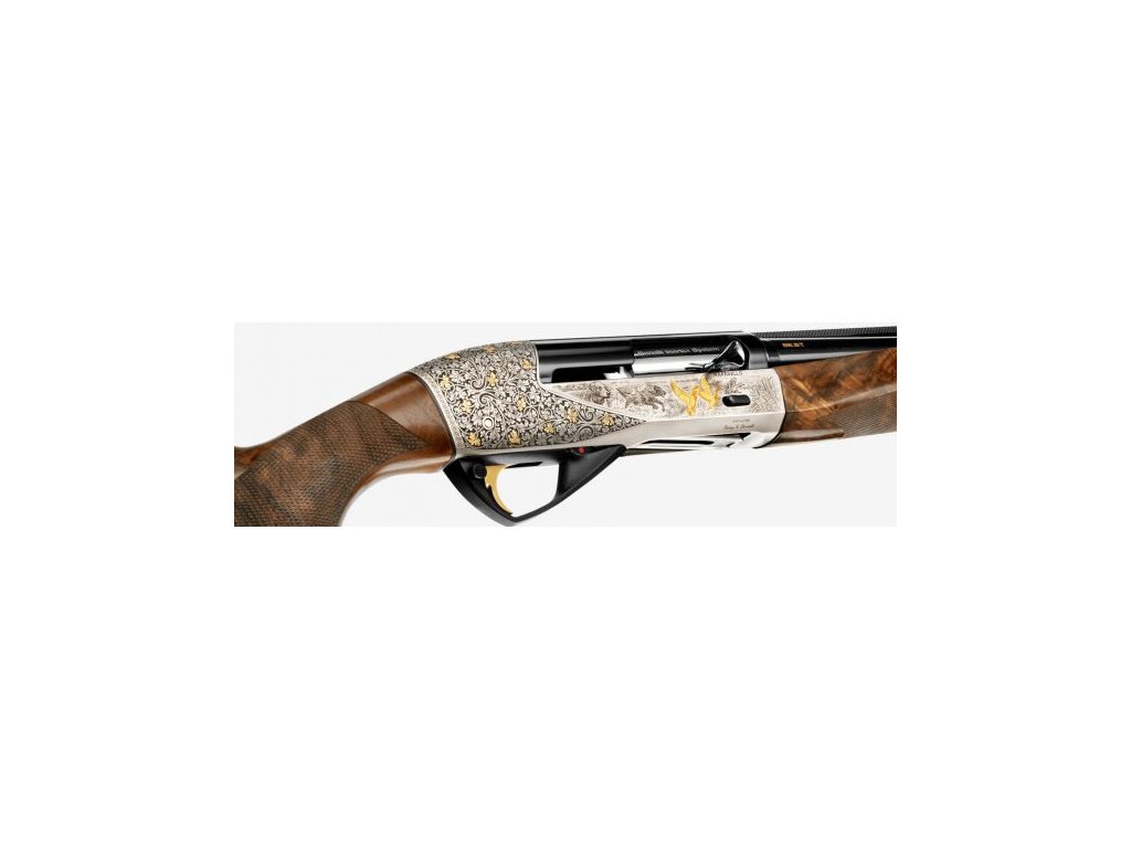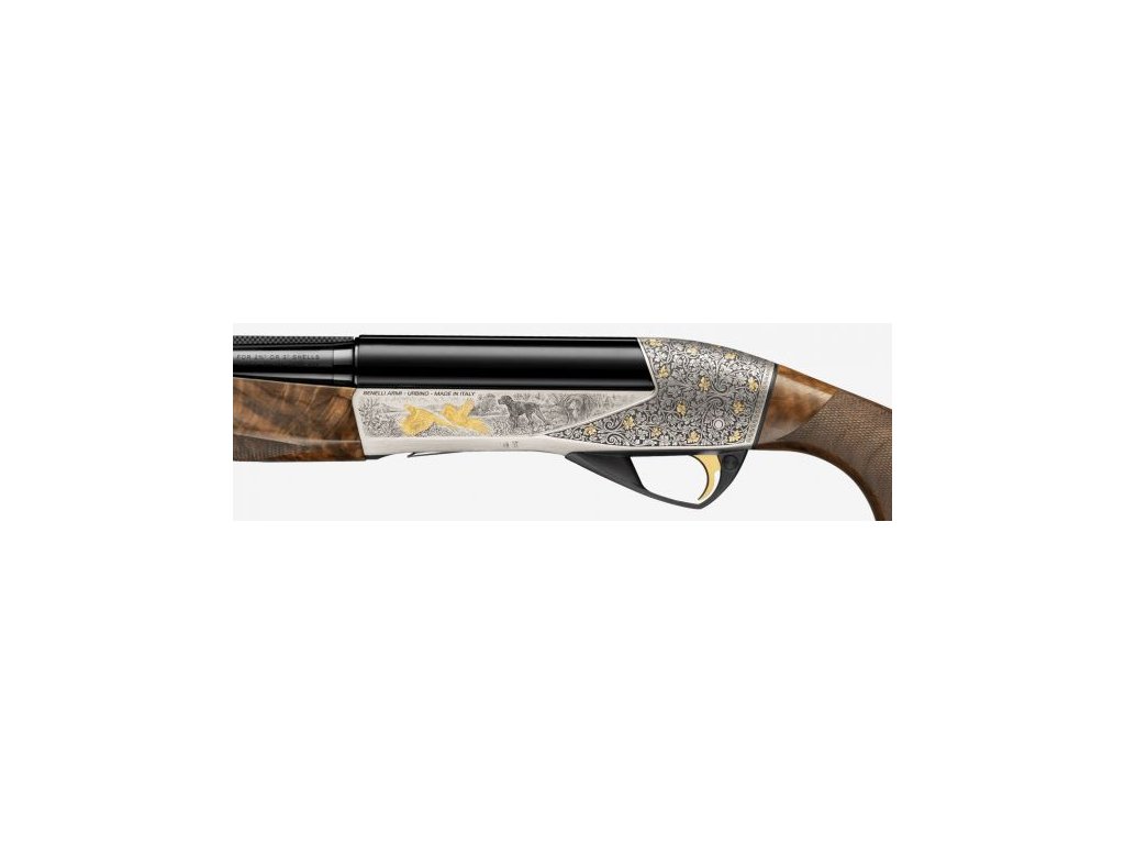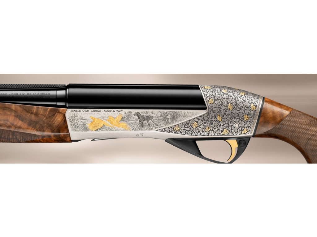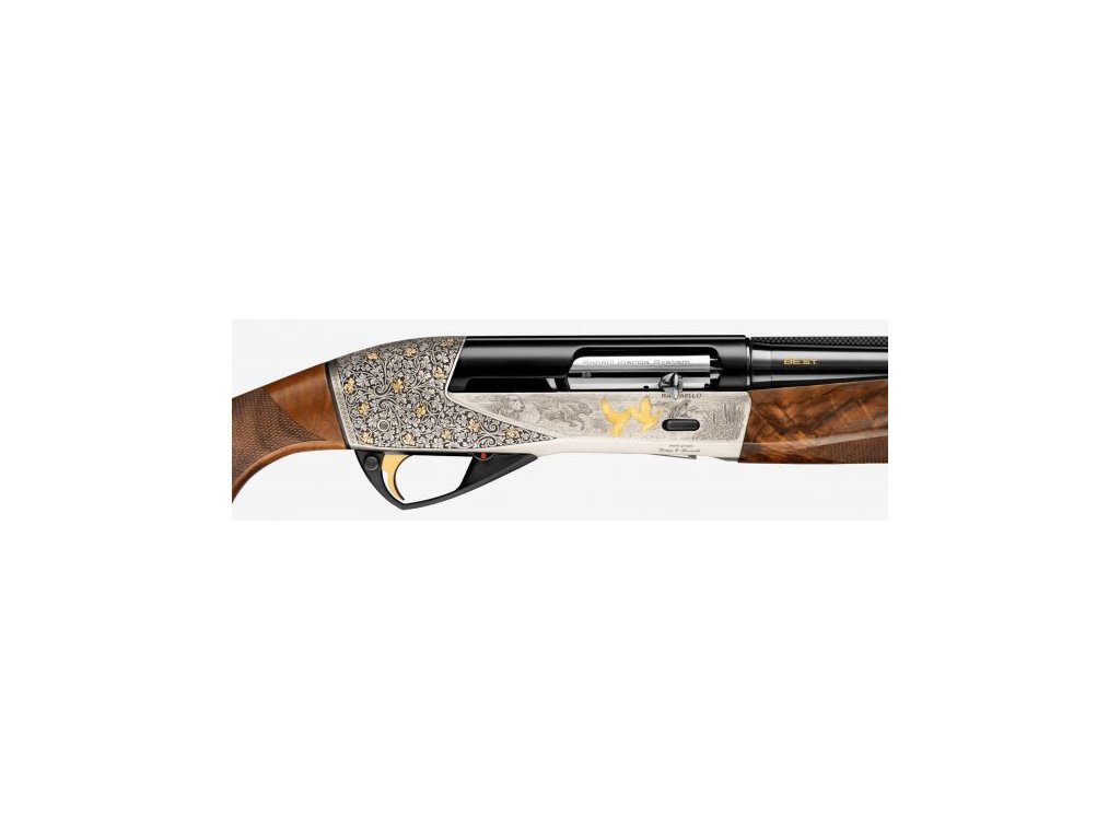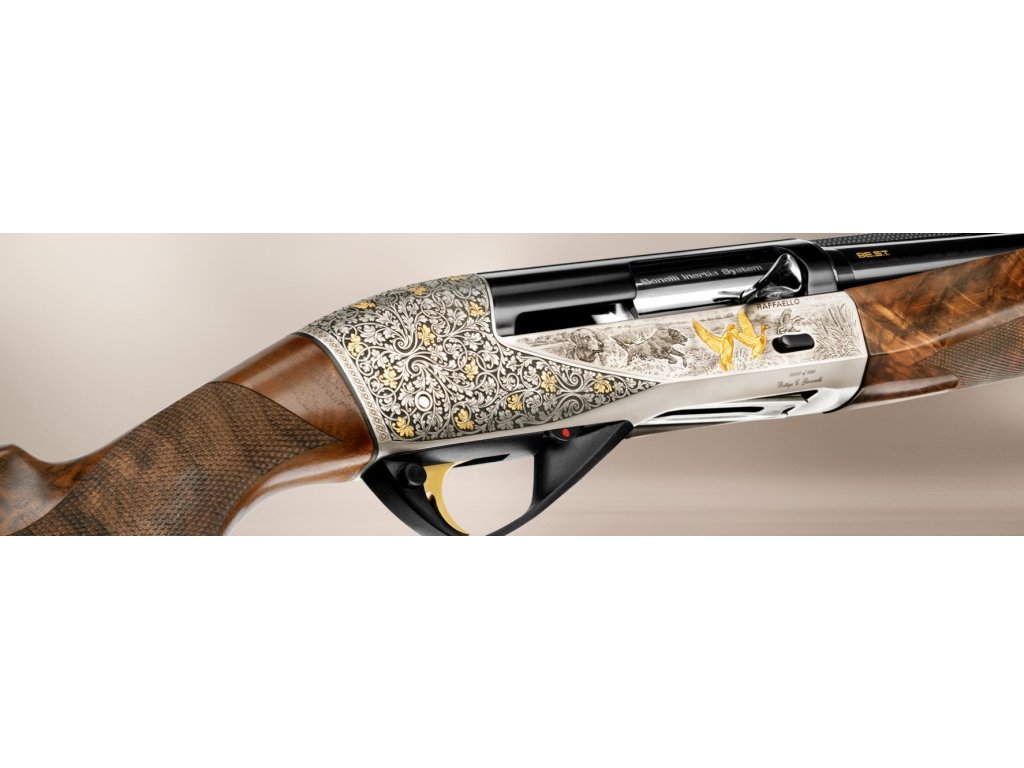 Raffaello A.I. BE.S.T. Limited Edition 12 gauge je exkluzivní mistrovské dílo, klenot techniky a umění, vyrobený v pouhých 1500 číslovaných exemplářích. Tato brokovnice, klenot techniky a umění, zvyšuje balistický výkon díky exkluzivnímu integrovanému systému hlavně a choku, který zajišťuje vynikající balistický výkon. Její elegance se projevuje především v rytinách, které jsou vznešenou poctou loveckému umění. Jemné lovecké scény, pečlivě ztvárněné dílnou C. Giovannelli, zdobí tělo zbraně, které je opatřeno laserem vyrytými renesančními květinovými vzory se zlatými detaily. Na pravé straně oživuje kopcovitou krajinu tři letící bažanti, z nichž dva jsou jemně pozlaceni elektrolytickým zlatem. Na levé straně zachycuje bažinatá krajina letící kachny, opět obohacená elegantním zlacením. Spoj mezi zavěrem a pažbou je zdoben ornamentálním tkaným páskem, zdobeným elektrolyticky pozlacenými listy, což vytváří dokonalou synergii mezi těmito dvěma prvky a dodává brokovnici mimořádnou eleganci. Raffaello A.I. BE.S.T. Limited Edition není jen brokovnice, ale skutečná ikona luxusu a tradice.