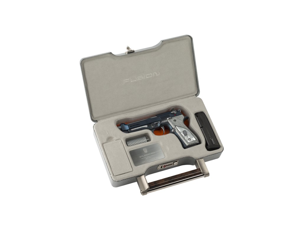 Je výsledkem peclivého designu zamereného na vytvorení dokonalé rovnováhy mezi tradicí a inovací. Název oslavuje toto „spojení“ ruzných materiálu a nejmodernejších dostupných technologií s remeslným umením, díky kterému se Beretta Premium Guns celosvetove proslavily. Výsledkem je pistole s nadcasovím designem bohatým na jemné detaily. Hlaven všechny páky a šrouby jsou chromované a rucne leštené, aby vytvorily kontrast s modrou povrchovou úpravou rámu a záveru. Ve srovnání s vojenskými standardy, které požadují maximální H+L 160 mm, Fusion Blue vyjadruje svou nejvyšší úroven presnosti pri výberu a úprave hlavne a zarucuje rozsah H+L od 60 do 70 mm. Exkluzivní série pouze 100 pistolí, 60 v ráži 9x19 a 40 v 9x21.