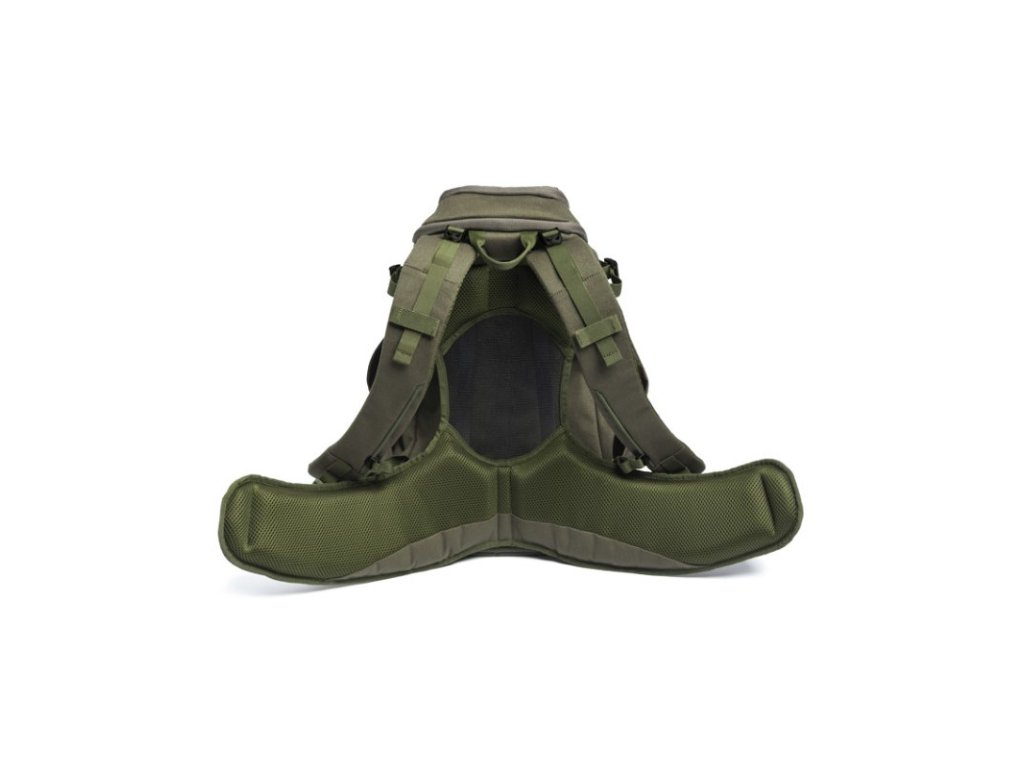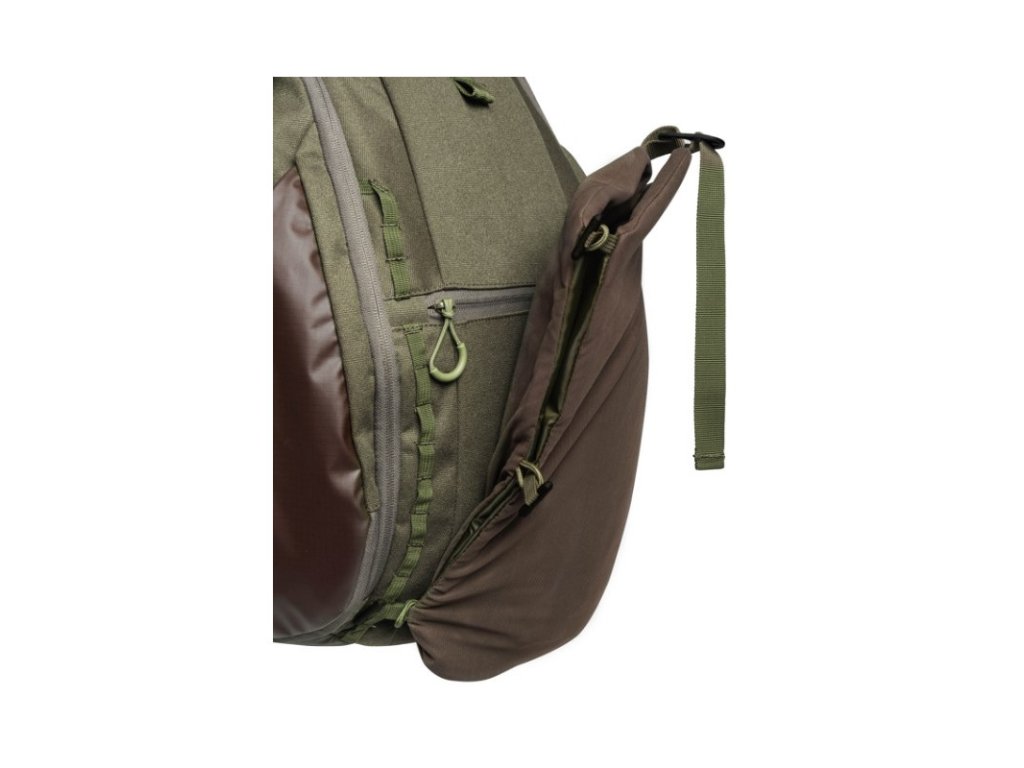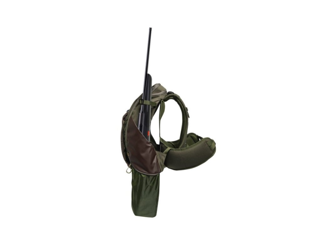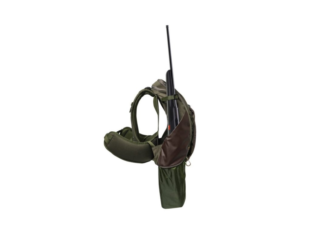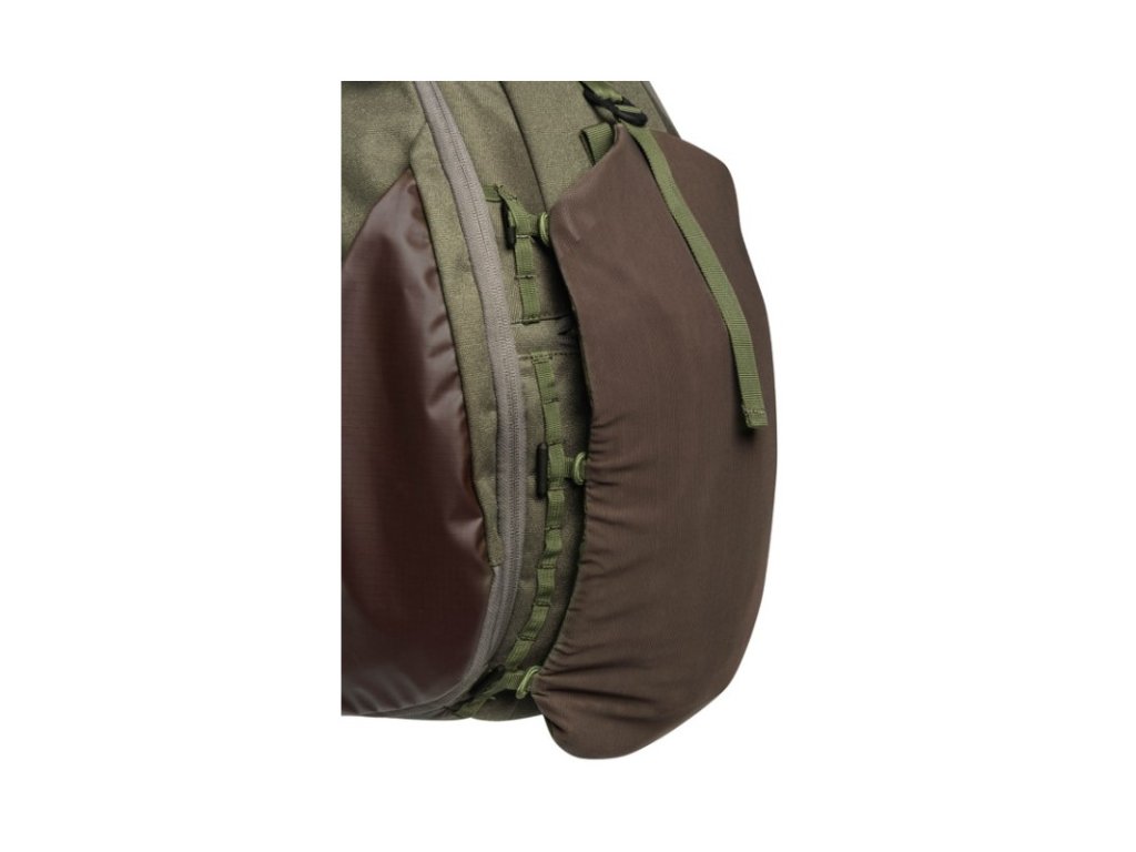 Střední batoh Ibex o objemu 30 l s odnímatelným vakem na zvěř, a bočními kapsami na pušky. Záda umožňují maximální prodyšnost.