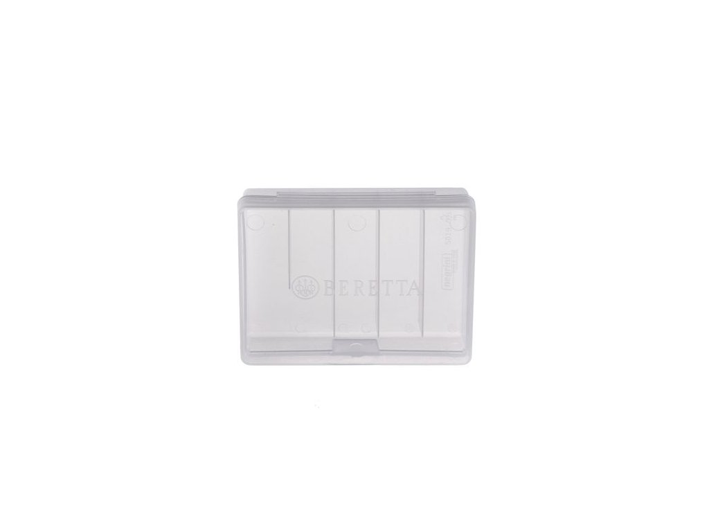 Tato nová krabička je vyrobena z robustního, ale pružného poloprůhledného polymerového materiálu, na víku je logo Beretta a díky 5 slotům umožňuje bezpečně přenášet celou sérii 5 choku v pouzdře na brokovnici (nebo 4 choky+ 1 klíč na choky).