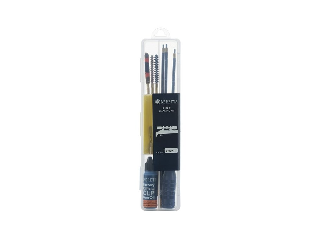 - Ocelový nástavec potažený PVC ve 2 kusech, které lze sestavit s ergonomickou protiskluzovou rukojetí - 1 vlněný kartáč v barvách ikonických šle Beretta - 1 mosazný kartáč - 1 nylonový kartáč - 1 držák čisticího hadříku pro puškovou ráži - 6 čisticích hadříků - 1 25m láhev „Factory Official CLP Gun Oil“.