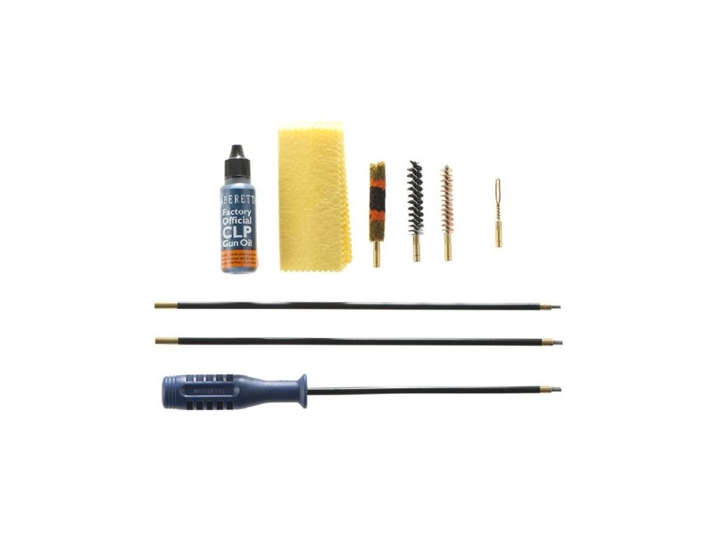 - Ocelový nástavec potažený PVC ve 2 kusech, které lze sestavit s ergonomickou protiskluzovou rukojetí - 1 vlněný kartáč v barvách ikonických šle Beretta - 1 mosazný kartáč - 1 nylonový kartáč - 1 držák čisticího hadříku pro puškovou ráži - 6 čisticích hadříků - 1 25m láhev „Factory Official CLP Gun Oil“.