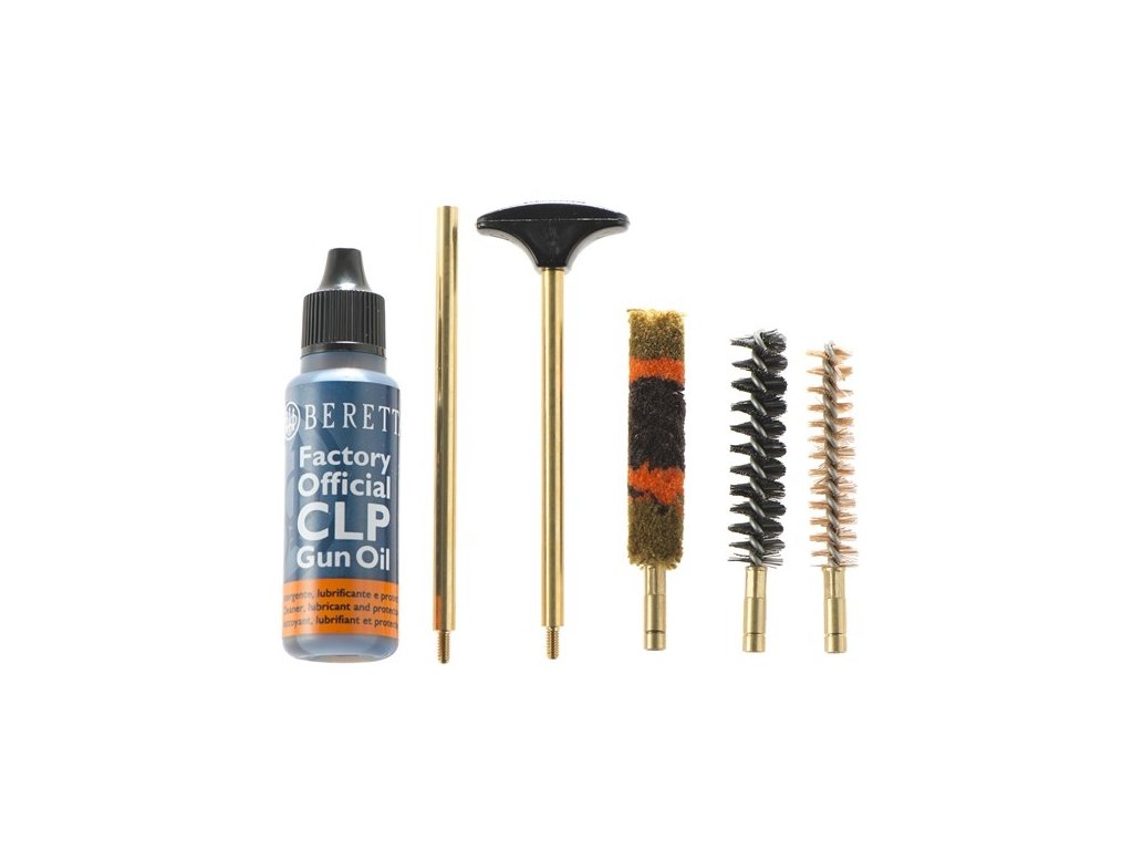 - Ocelový nástavec potažený PVC ve 2 kusech, které lze sestavit s ergonomickou protiskluzovou rukojetí - 1 vlněný kartáč v barvách ikonických šle Beretta - 1 mosazný kartáč - 1 nylonový kartáč - 1 držák čisticího hadříku pro puškovou ráži - 6 čisticích hadříků - 1 25m láhev „Factory Official CLP Gun Oil“.