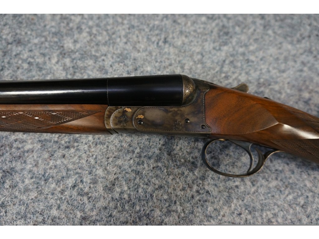 Klasická lovecká broková dvojka Fausti DEA .Anglická pažba , mramorovaná baskule , Ráže 12/76mm,12/76mm Délka hlavní 71cm.Výměnné zahrdlení
