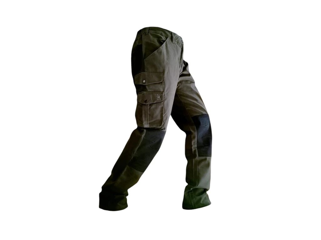 Pánské kalhoty z vysoce kvalitního materiálu 60% bavlna/40% polyester. Namáhané části (kolena, zadní část) jsou z pružného materiálu 97% bavlna/3% elastan.