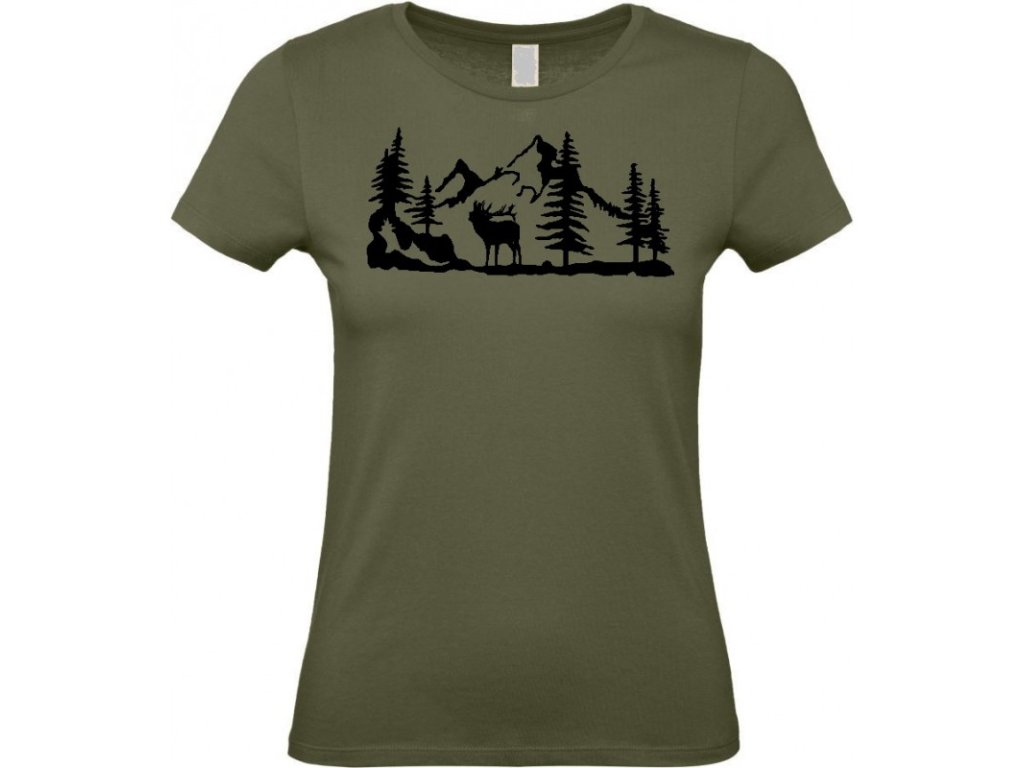Knebl - tričko dámské krátký rukáv, zelené - Jelen v lese