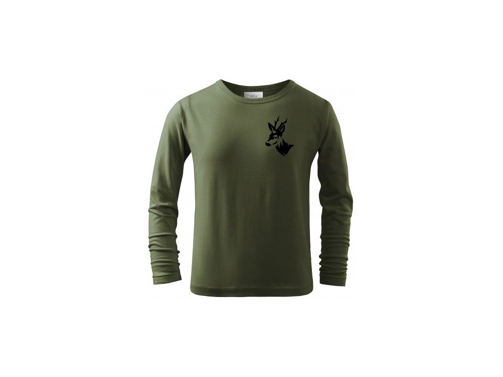 Knebl - tričko dětské dlouhý rukáv, zelené - Srnec
