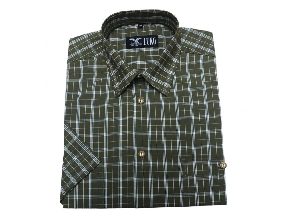 Košile Luko, pánská, kostkovaná zelená, kr. rukáv