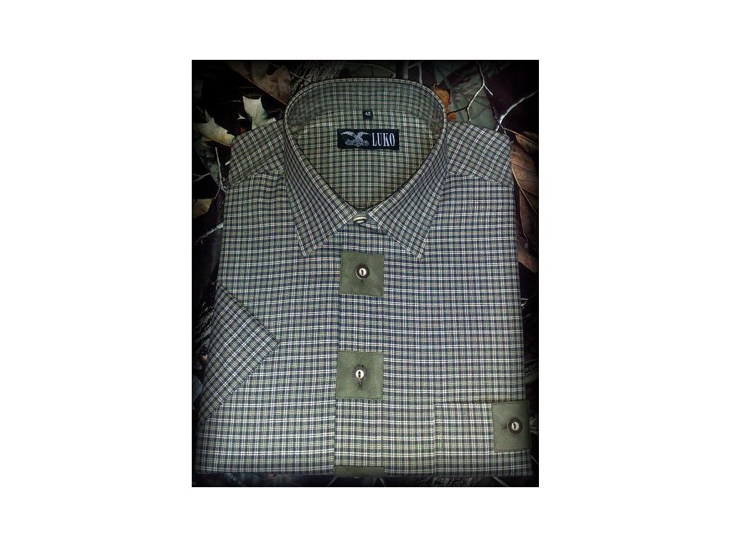 Košile Luko, pánská, kostkovaná zelená s motivem kůže, kr. rukáv