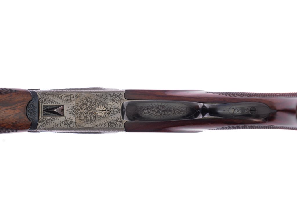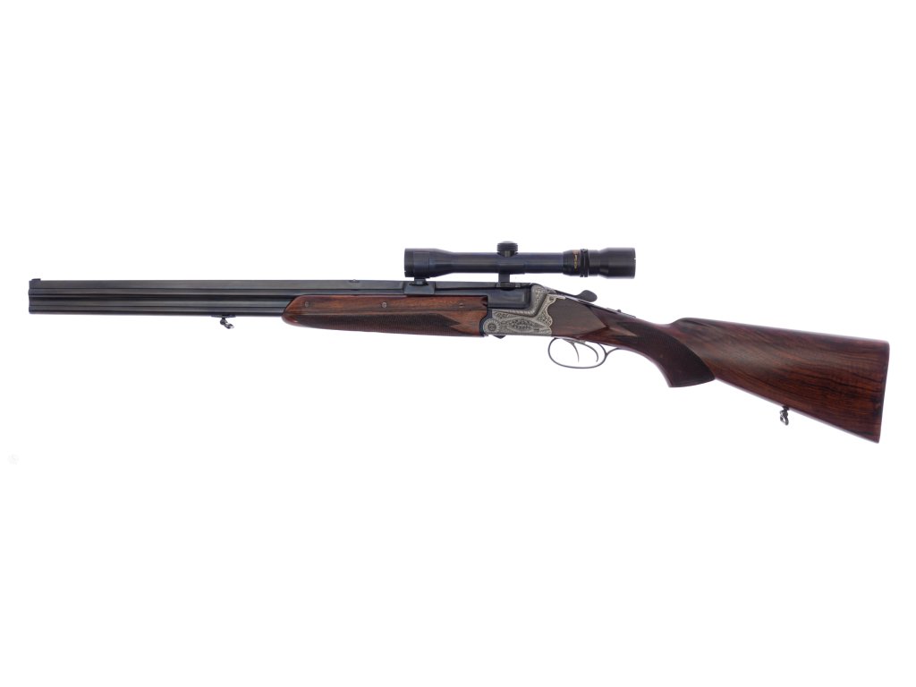 Kulová kozlice Waffen Dschulnigg - Salzburg ráže 9,3 x 74 R Délka hlavně 61 cm (24"), délka pažby 36 cm (14,25"),celková délka 103 cm (40,5"), hmotnost 4,1 kg, rok výroby 1973,rakouská zkouška.Hlavně s vysokou šínou, ploché sklopné hledí, vyhazovače, dvojitý křížový závěr.Zesílená baskule s ručně rytými ornamenty.Automatická posuvná pojistka, dvojitá spoušť s napínáčkem na přední spoušti.Hladká pažba z ořechového dřeva, plochá pistolová rukojeť,vyřezávaná botka pažby, třídílné předpažbí, montáž Suhl se zaměřovačemKahles Helia-Super 27 S2, zaměřovač v druhé ohniskové rovině.