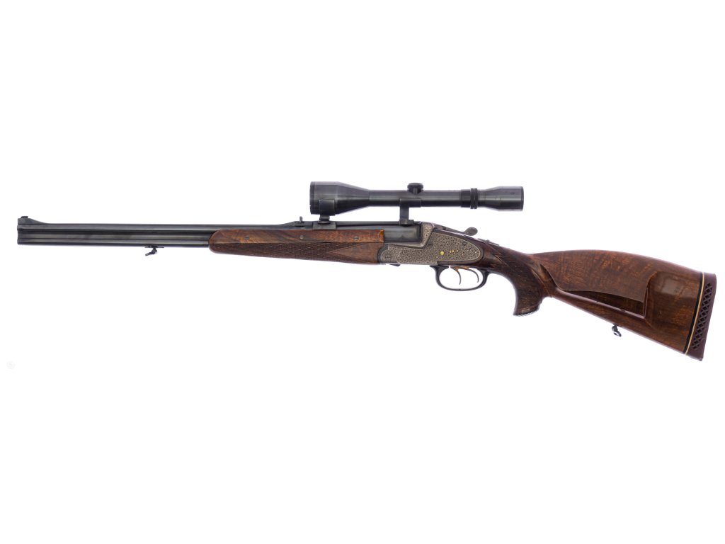 Délka hlavně 60 cm (23,5"), délka pažby 36,5 cm (14,5"), celková délka 103 cm (40,5"), hmotnost 4,2 kg, rok výroby 1958.Pevná mířidla, zlatě zbarvené vyhazovače, šedá povrchová úprava s ornamentální rytinou, automatická posuvná pojistka se zlatem vykládaným nápisem "SAFE", zlatě zbarvené šrouby a čepy, dvojspoušť s napínáčkem na přední spoušti, lučík spouště z rohoviny, pažba z ořechového dřeva, strmá pistolová rukojeť, lícnice, silná ventilovaná pryžová botka, trojdílné předpažbí, německá Claw montáž s optikou Kahles Helia 6 S 4A.