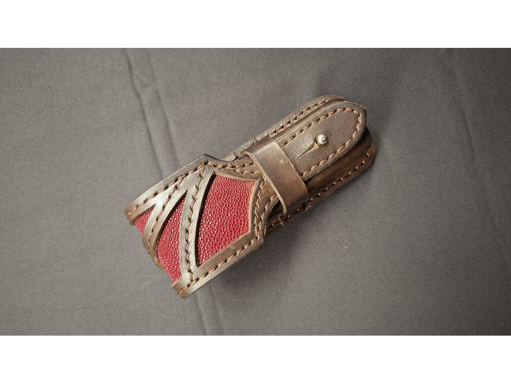 Pouzdro je ušito z hovězí a rejnočí kůže.