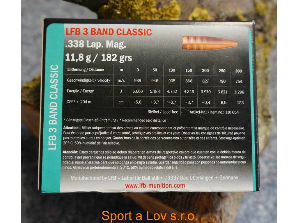 Náboje LFB .338 Lap.Mag. 3Band Classic 11,8g/182gr.