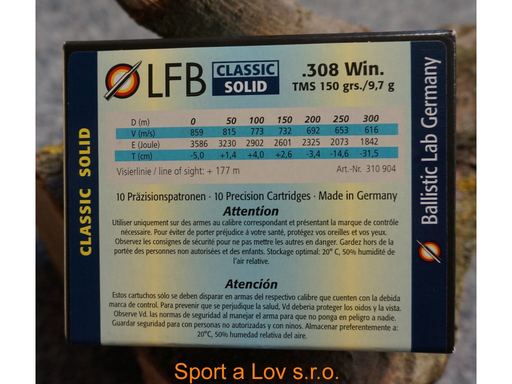 Náboje LFB 308Win. Classic solid 9,7g/150gr.