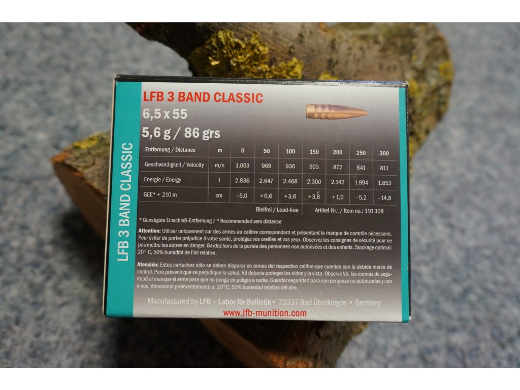 Náboje LFB 6,5x55 3Band Classic 5,6g/86gr.