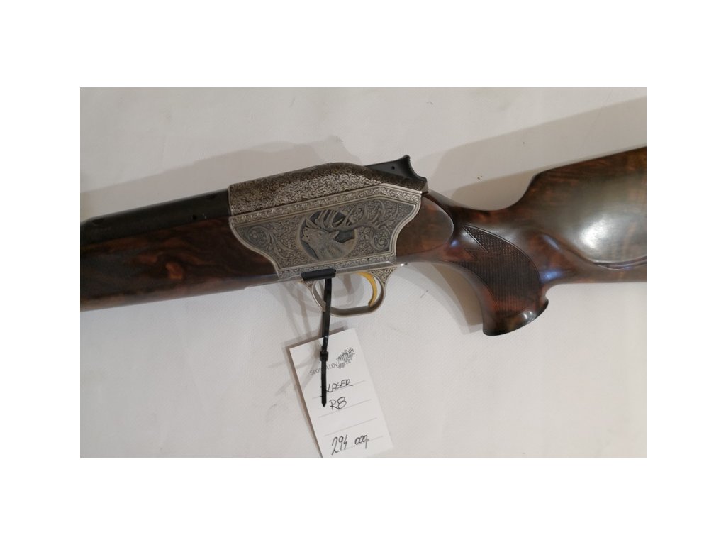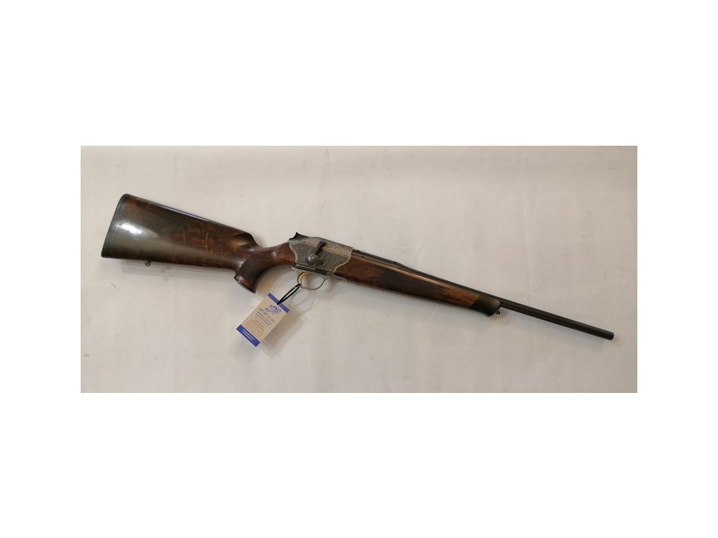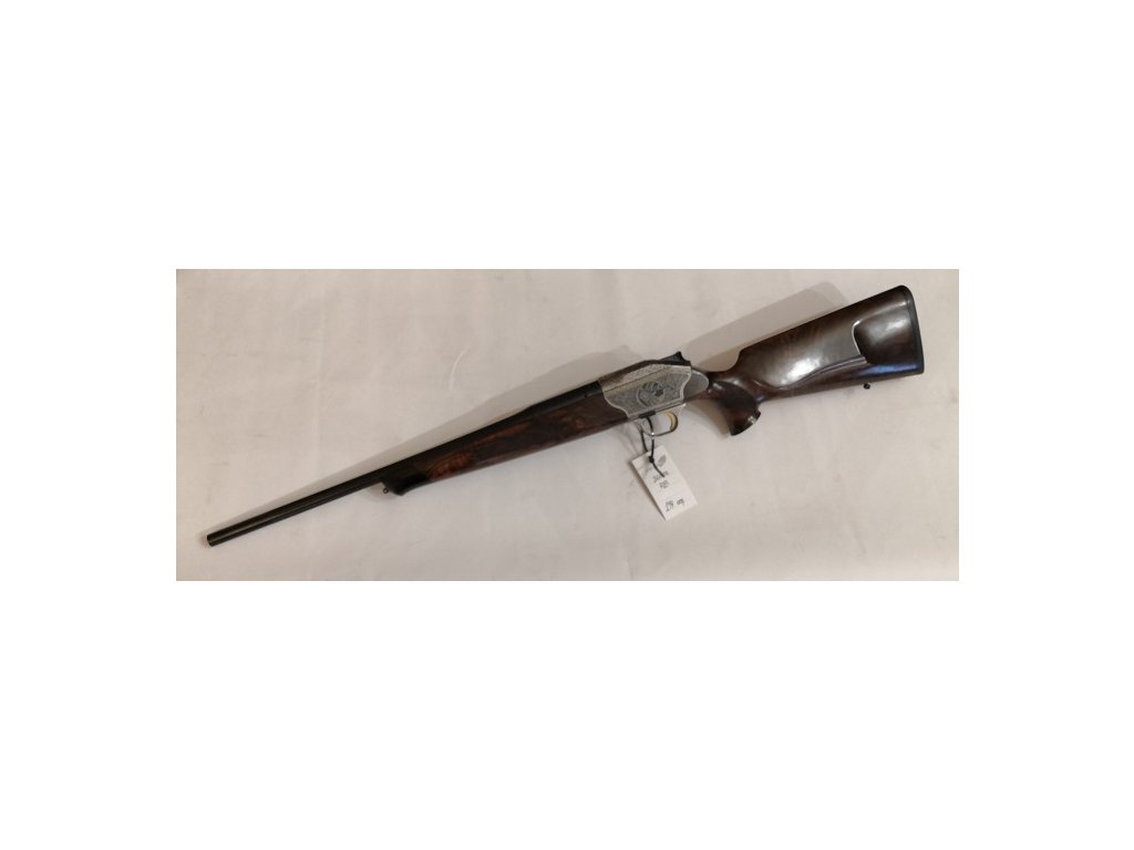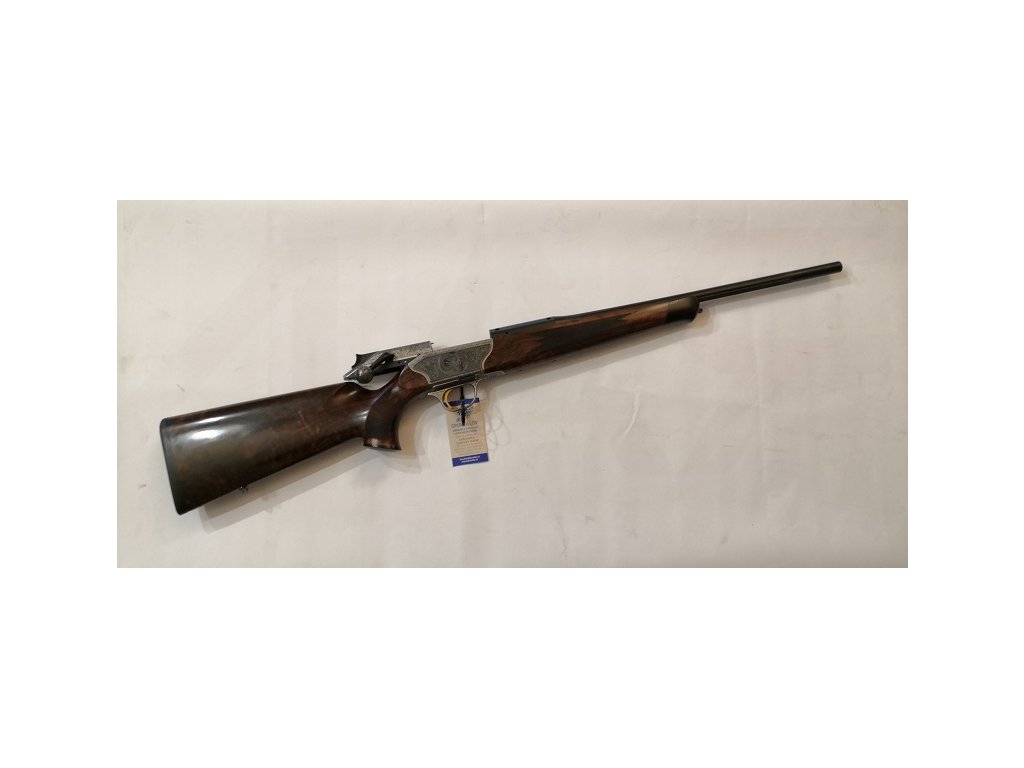 Blaser R8 zdobená luxusní rytinou zobrazující jelena na druhé straně muflon.