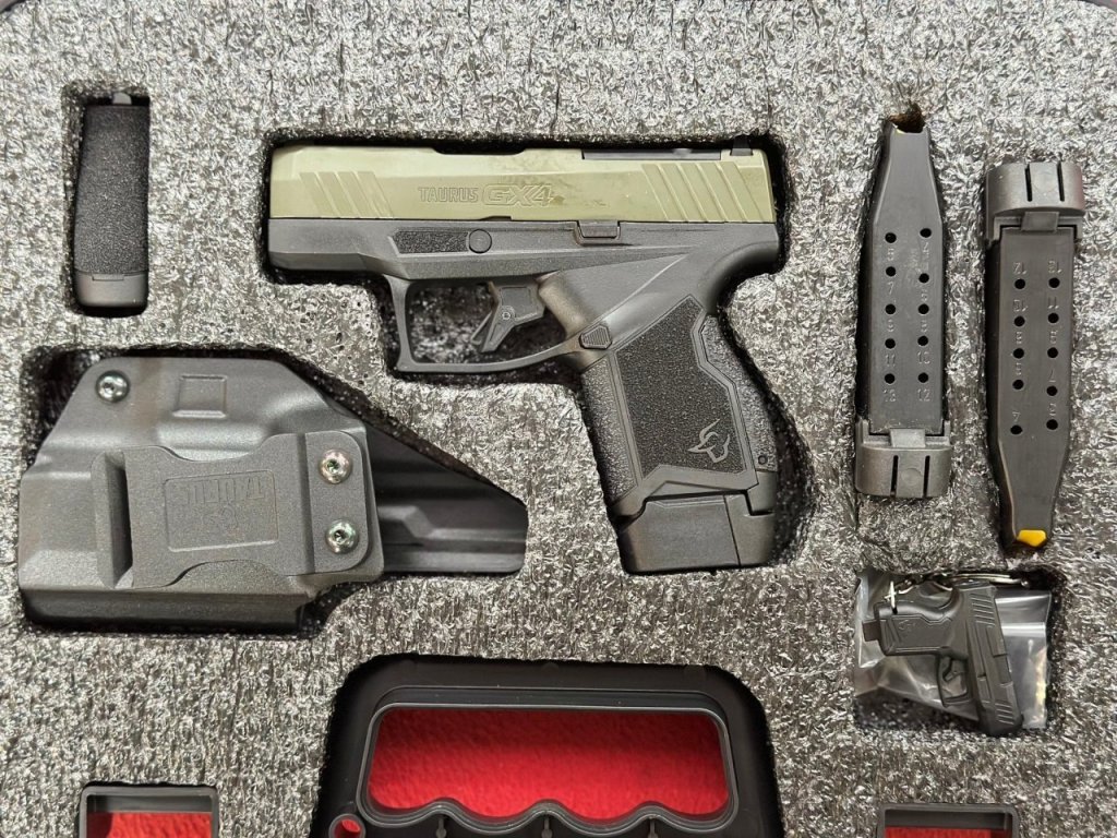 Samonabíjecí pistole Taurus GX4 T.O.R.O, 9 mm Luger, 3", Černo/zelená v sadě s pouzdrem na LEVOU STRANU