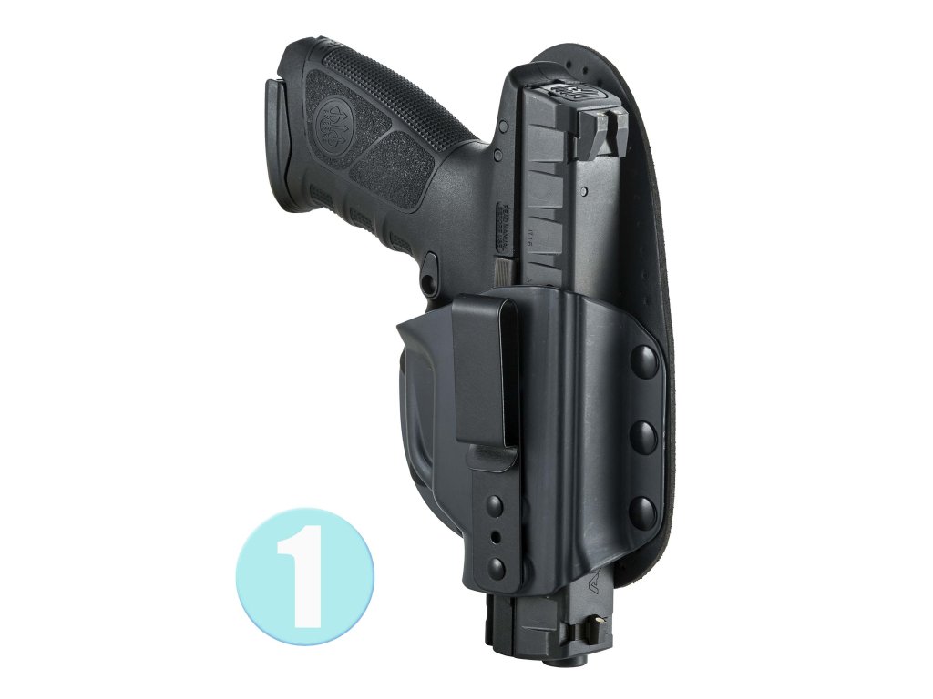 Pouzdro Beretta pro model pistole APX - RHTepelně tvarované pouzdro ABS * díky menšímu rozměru a velikosti je ideální pro skryté nošení - jak pro policejní, tak i pro sportovní účely (IDPA, IASC).Příchytka PADDLE BELT umožňuje nosit pouzdro bez opasku, pouzdro zůstane stabilní při extrakci pistole.Náš pouzdro Civilain Ghost s vysokým systémem jízdy lze použít se všemi druhy opasků (3,5 - 5,5 cm).Pouzdro je dodáváno s Padle, systémem High Ride a systémem Low Ride.Černá barva* Výhodou ABS je, že tento materiál spojuje pevnost a tuhost akrylonitrilu a styrenových polymerů s houževnatostí polybutadienového kaučuku. Nejdůležitějšími mechanickými vlastnostmi ABS jsou odolnost vůči rázům a houževnatost. K vylepšení odolnosti proti rázům, houževnatosti a tepelné odolnosti lze provést různé úpravy.