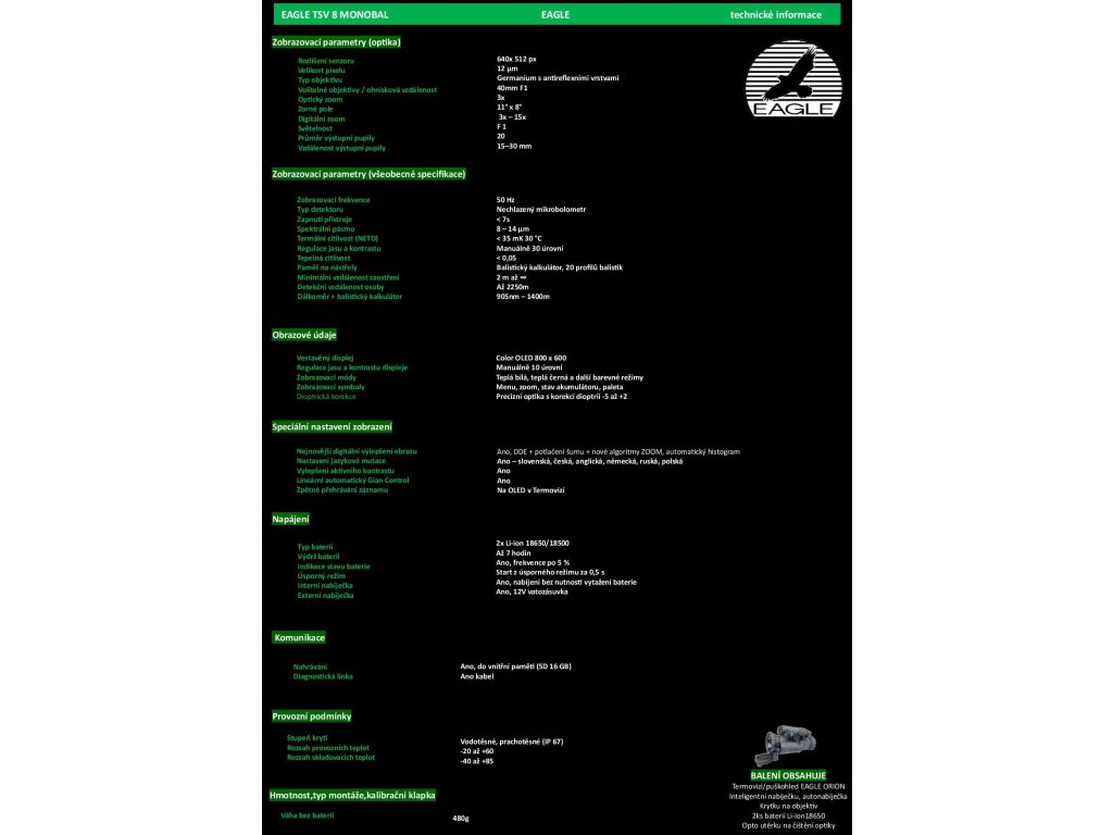 Malý pozorovák EAGLE 640x512, 12um, 3x zvetšení, 5x zoom, dálkomer, objektiv 40, záznam, foto, bat. 2x 18650, popruh,