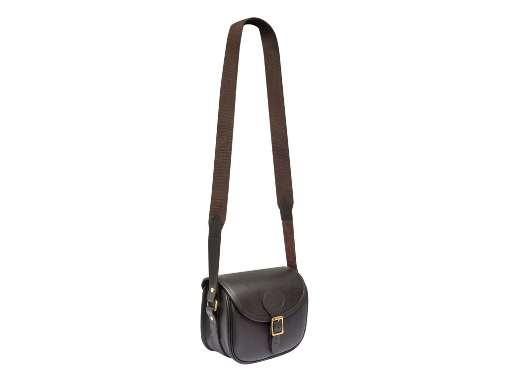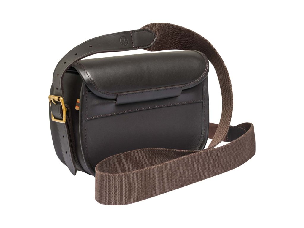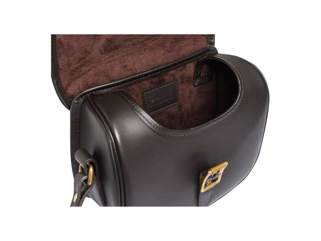 Brašna na náboje s vložkami z pravé kůže s klopovým uzávěrem.