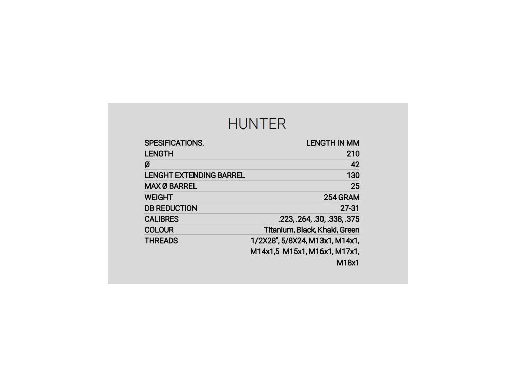 Navržen pro myslivce a strelec, který vyžaduje maximální snížení hluku a snížený zpetný ráz.