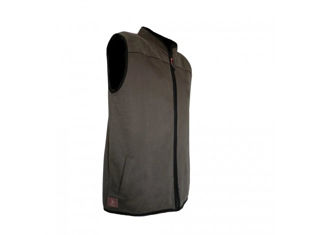 Vesta  ze směsového materiálu 60% bavlna/40% polyester se zipem YKK a s trvanlivým potiskem. Barva tmavě zelená. Vesta je příjemná na nošení, lehká a snadno se udržuje (praní na 40 stupňů). YKK zip zaručuje dlouhou životnost a bezproblémové zapínání. Vesta má dvě kapsy a nenápadný potisk s motivem jelena.